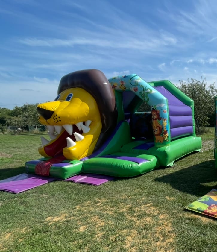 Book your bouncy castle hire Essex 3D King of The Jungle Front Slide Combi Bouncy Castle with Slide in Basildon, Billericay, Thurrock, Southend on sea today and let your party ROAR with fun and excitement! 🦁🎠