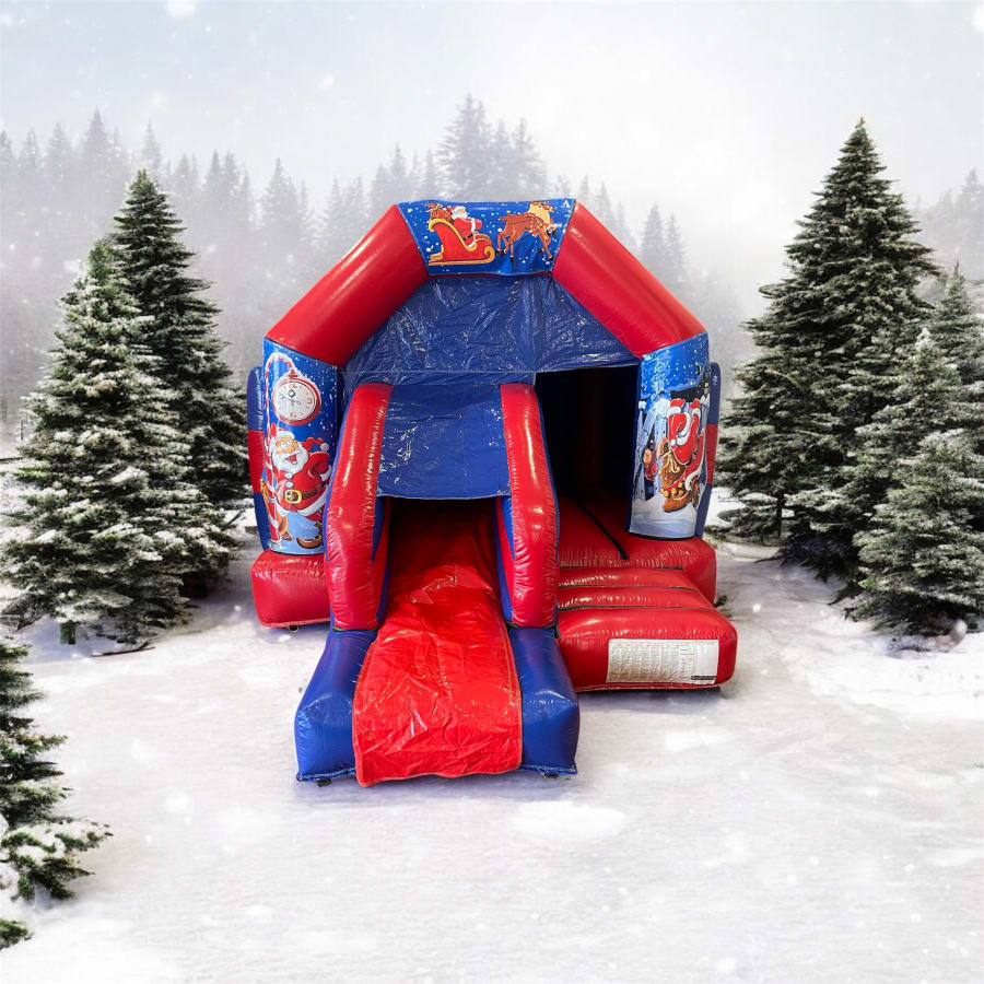 Book with proven local experts. Bouncy Castle Hire in Essex Christmas Super Front Slide Combo (Red & Blue) in Basildon, Brentwood, Chelmsford — available with reliable delivery and setup. We handle safety checks, secure anchoring and full briefings so you can focus on fun.