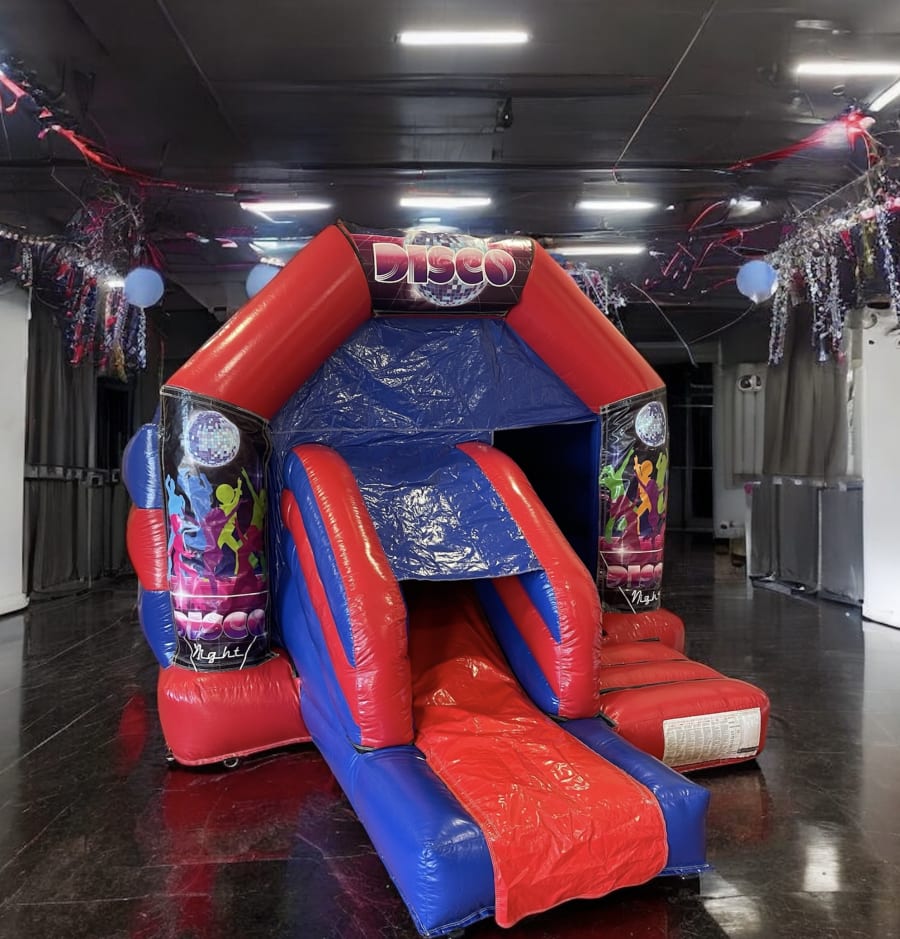 Ready to party? Book the Disco Night Super Front Slide Combi (Red/Blue) today with Bouncy Castle Hire in Essex. Contact us for price, availability, and safe, reliable delivery. ๐Ÿ“ž๐ŸŽŠ