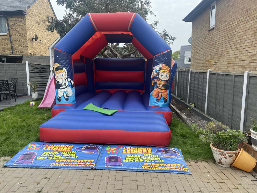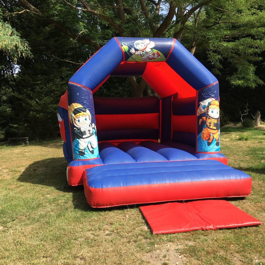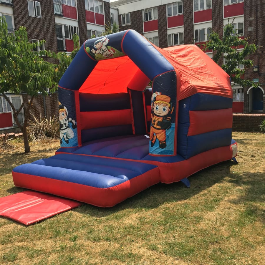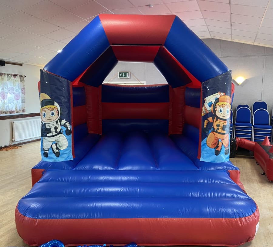 This castle is 12ft X 15ft and has a built in rain cover. It is red and blue which are ideal colours for use for both boys and girls party's. Perfect for all of those budding astronaut's out there.