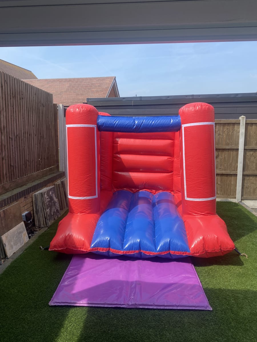 This is our 8ft x 8ft Nano bouncy castle. With beautiful blue & red gloss material it really does look great. Perfect for both boys and girls it would make a great addition to your event.