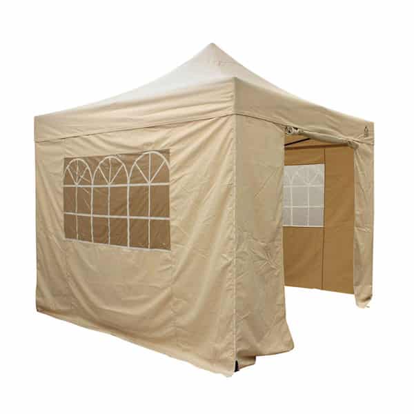 This is a 3x3m party gazebo that can comfortably sit six people around one of our tables and chairs for hire, or 12 people standing.