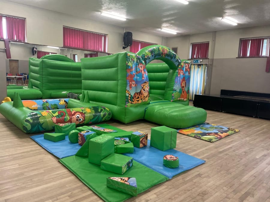 with the bouncy castle being only 8ft tall it will fit in most halls too.