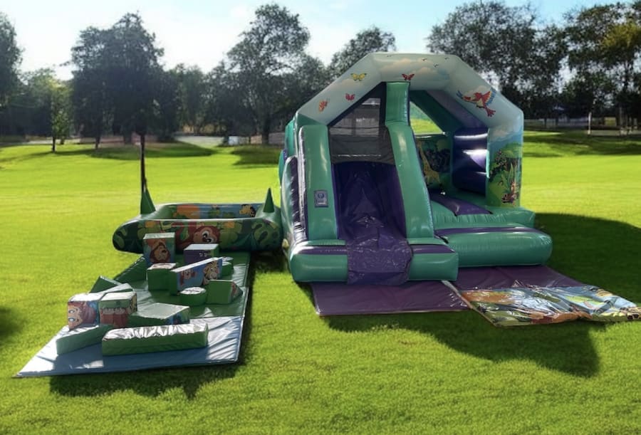 Bring a wild smile to your event with the Ultimate Classic Jungle Bounce, Slide & Play Package. 🐒 Perfect for birthdays, family fun days, nurseries, and community events. This bouncy castle with slide and jungle-themed soft play features unisex colours, safe design and high-impact fun for toddlers to older kids. Great fun for all ages. 🎉